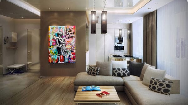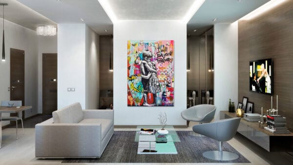 Een liefdevol en kleurrijk Banksy kunstwerk