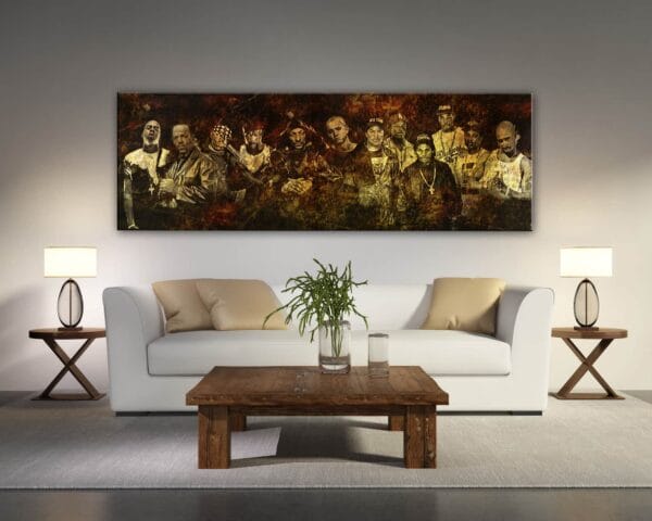 Old Skool Gangster Rappers bij elkaar gebracht, ook mogelijk om je rapper of rappers van deze tijd ertussen te plaatsen. NWA, Ice T, Eminem, Snoop en meer….wie kent ze niet. Of heb je zelf een rapper die je erbij wilt of misschien jezelf ertussen? Uniek in de wereld want door ons zelf ontworpen! Verkrijgbaar in 1.50 meter x 0.50 meter.