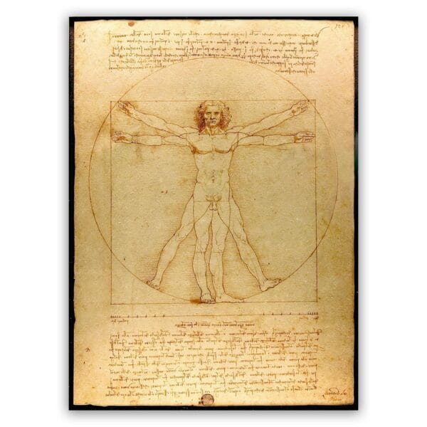 Het is zonder twijfel de bekendste tekening die Leonardo da Vinci Maakte: de ‘mens van vitruvius‘ of de ‘Vitruviusman’. Hij maakte de tekening rond 1490 als illustratie bij een traktaat van een wiskundige uit zijn tijd en het was niets meer dan een studie van het menselijk lichaam, geschetst op basis van de verhoudingen zoals weergegeven in het werk De architectura van de Romeinse schrijver Vitruvius.